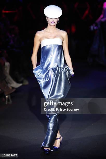 I was absolutely floored by this custom Armani Privè gown that Hunter Schaefer wore to the Cannes Film Festival last May. This stunning dress was an altered design from Armani Privè’s SS 2011 collection. The fabric (which I assume is liquid silk organza) is the star of the show, shining in a metallic periwinkle, but the silhouette and the gathering along the waist is so my cup of tea. I, too, dream of embodying a shiny glass bottle. Plus, pockets! YES.