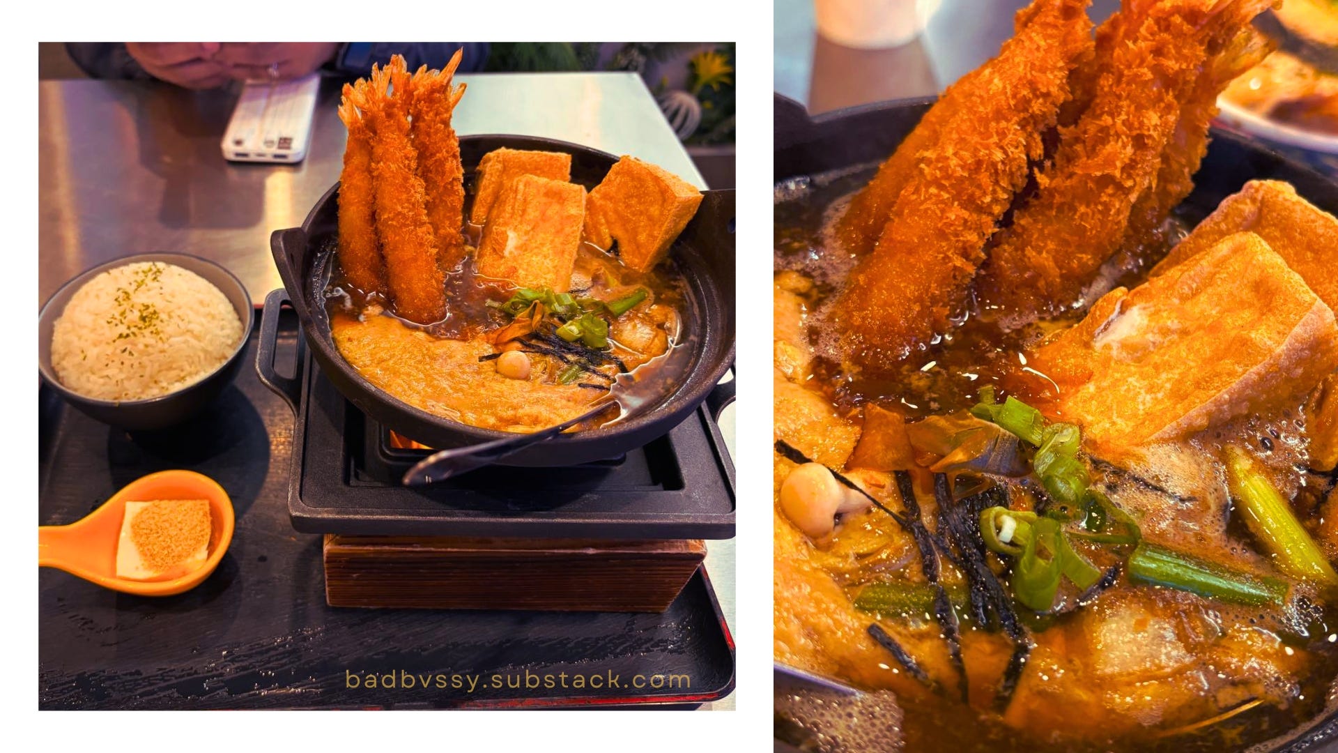 My favorite meal was from the Taiwanese restaurant Mabu Generation in Mississauga. I ordered the Mabu Egged Suyaki with Rice, which wasn’t sukiyaki exactly but rather like a hot pot broth with egg and tempura cooked in the broth. My mouth is currently watering as I’m writing this. Truly I think about this dish every few weeks. This had tempura, onions, eggs, suyaki sauce, and seaweed, along with some white rice and what I initially thought was tofu but can’t be tofu because it was far too gelatinous and sweet. I don’t think it was rakugan or any sort of Japanese confectionery. If anyone has a clue, please let a girl know!